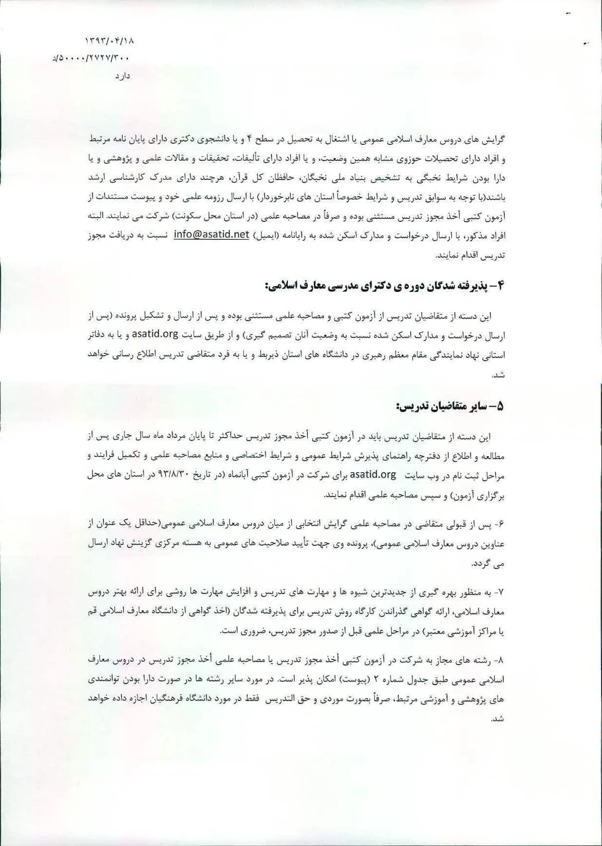 مراحل مجوز تدریس برای استادان دروس معارف اسلامی عمومی