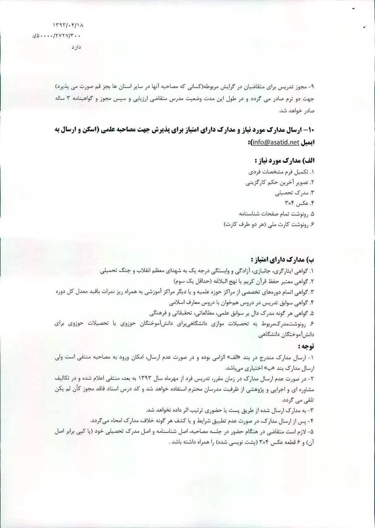مراحل مجوز تدریس برای استادان دروس معارف اسلامی عمومی
