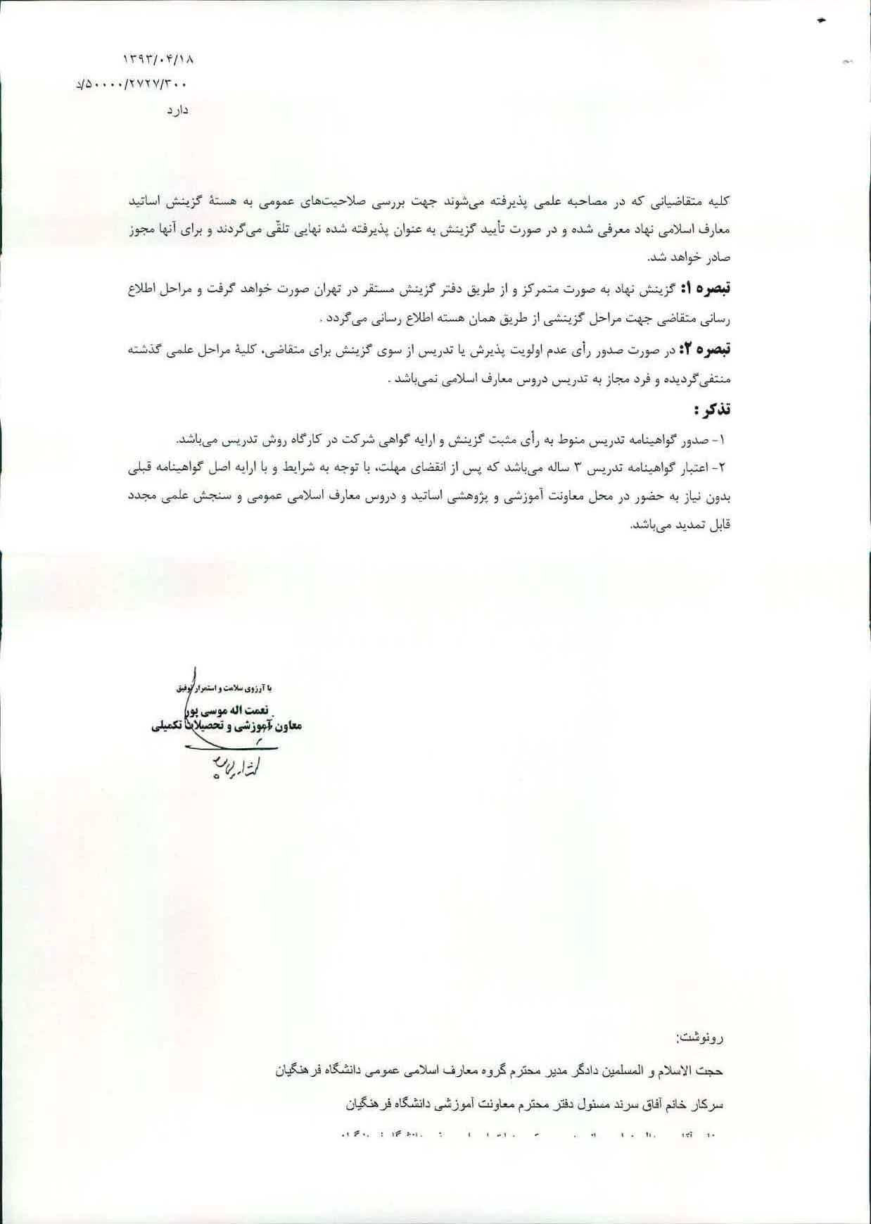 مراحل مجوز تدریس برای استادان دروس معارف اسلامی عمومی