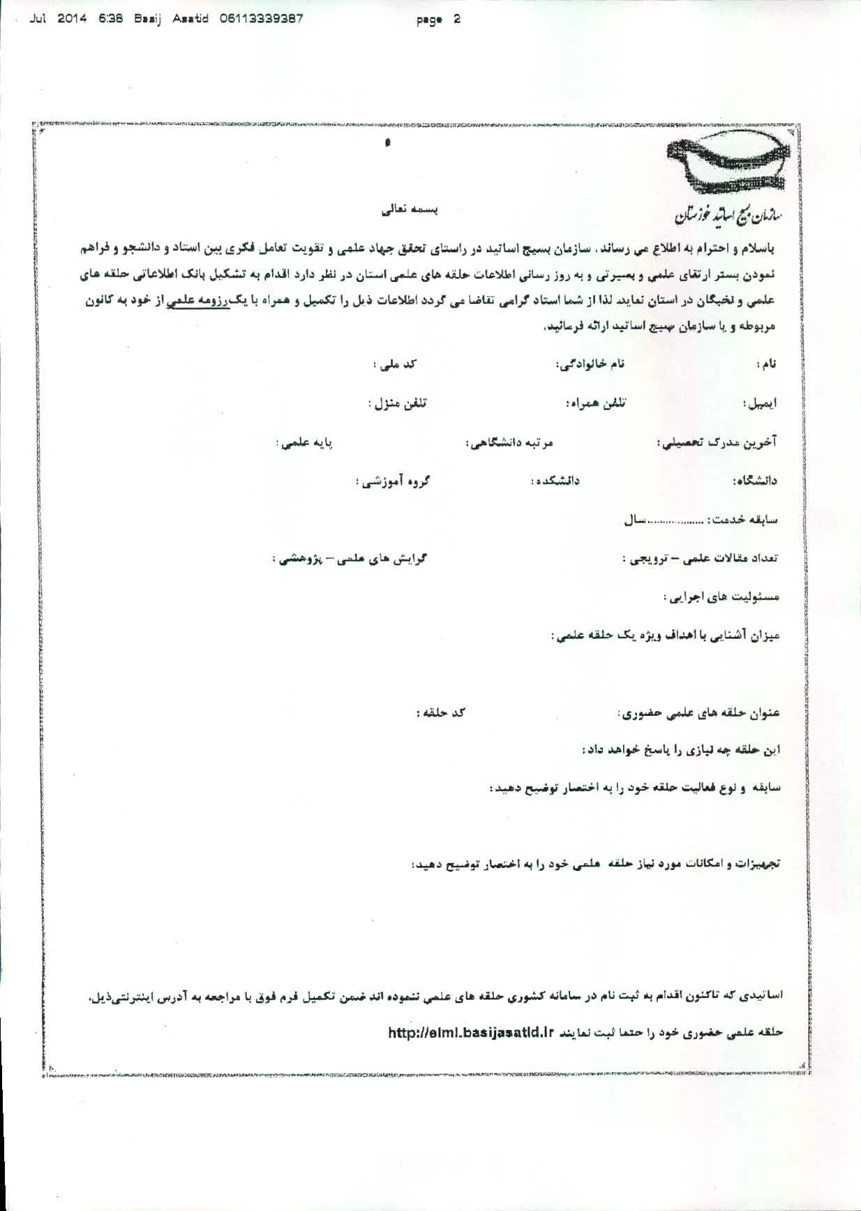 تشکیل بانک اطلاعاتی حلقه های علمی ونخبگان دراستان