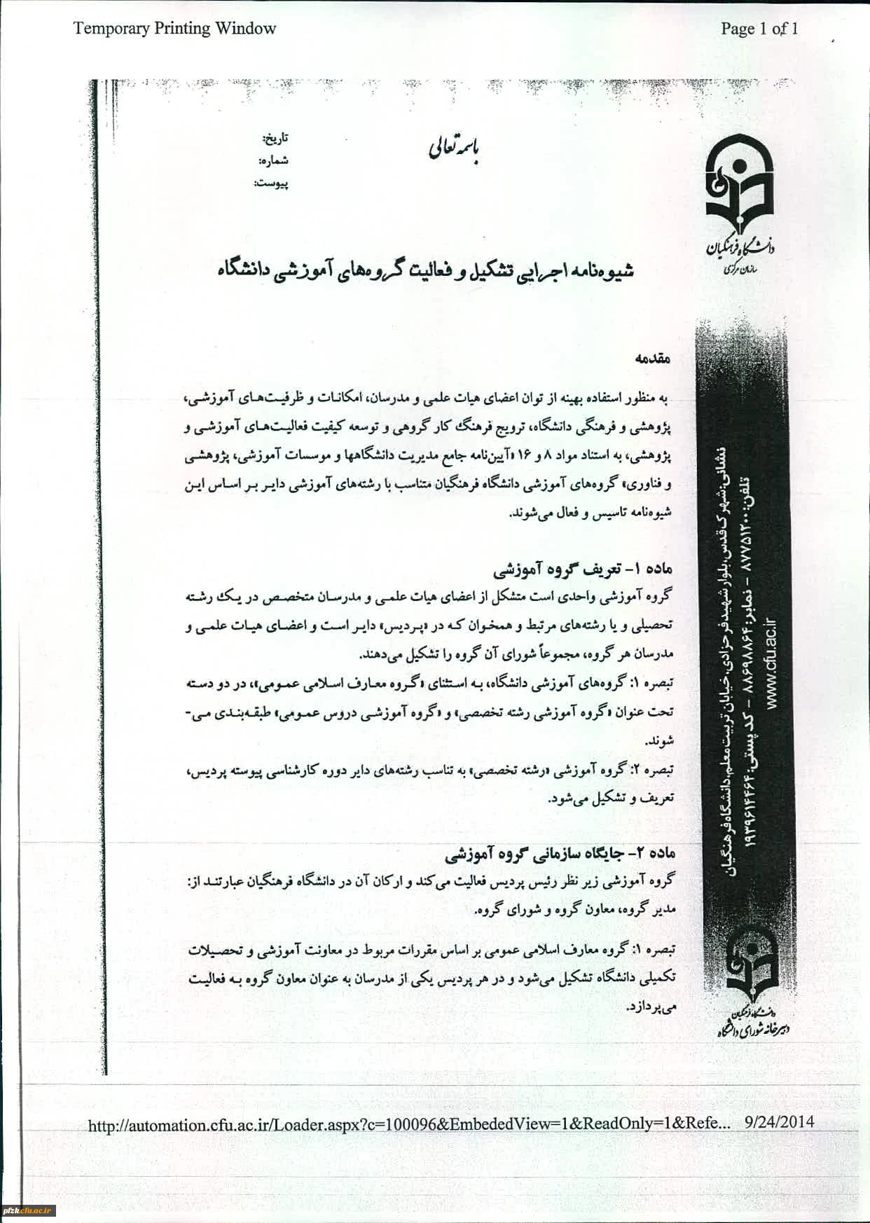 شیوه نامه اجرایی تشکیل وفعالیت گروه های آموزشی دانشگاه