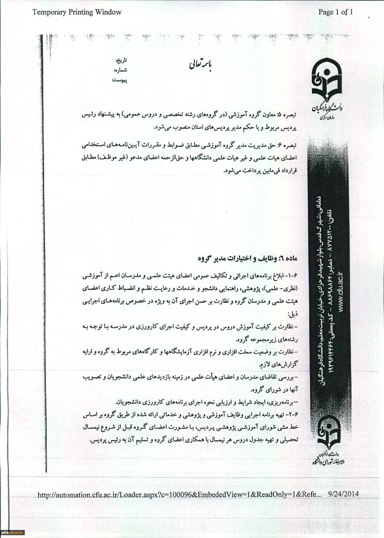 شیوه نامه اجرایی تشکیل وفعالیت گروه های آموزشی دانشگاه