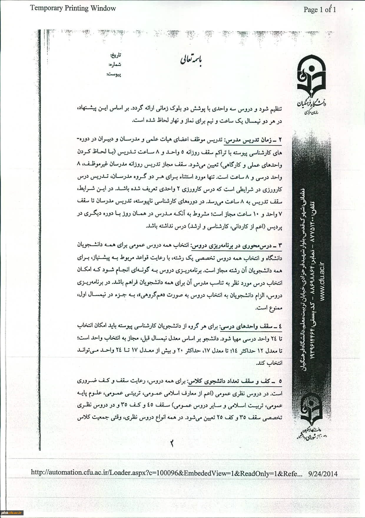 منشورکیفیت آموزش دردانشگاه