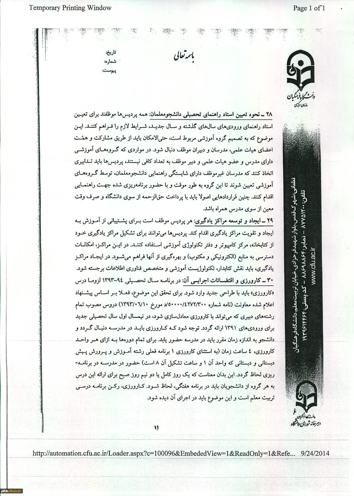 منشورکیفیت آموزش دردانشگاه