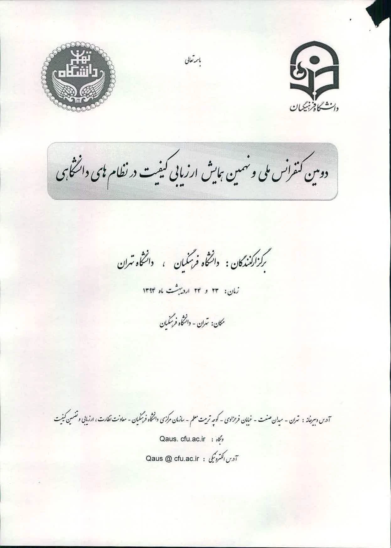 دوین کنفرانس ملی ونهمین همایش ارزیابی کیفیت درنظام های دانشگاهی