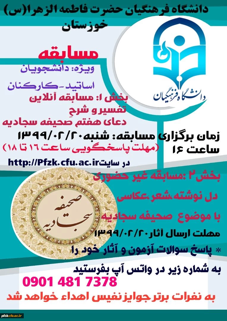 امتیاز دهید : بارگذاری سوالات مسابقه مجازی تفسیر دعای هفتم صحیفه سجادیه به پیوست این اطلاعیه 2 شنبه 20 اردیبهشت 1399 ساعت 15:35
