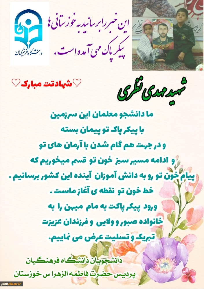 پاسداشت مقام شهید تازه تفحص شده مدافع حرم مهدی نظری