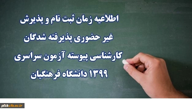 اطلاعیه زمان ثبت نام و پذیرش غیر حضوری پذیرفته شدگان کارشناسی پیوسته آزمون سراسری 1399 دانشگاه فرهنگیان