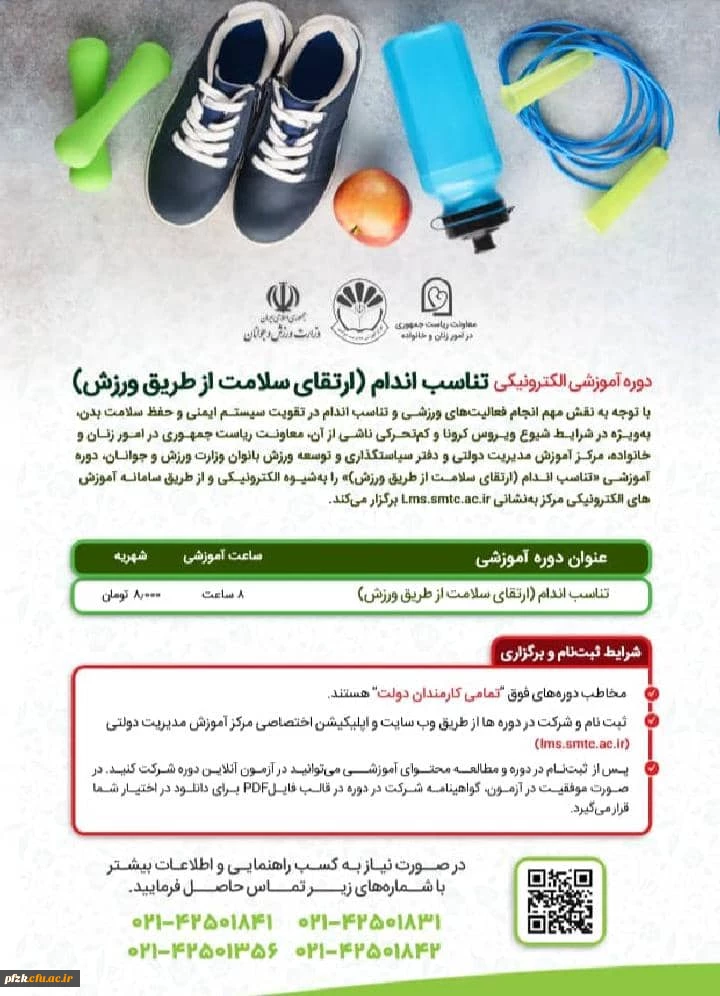 امتیاز دهید : دوره آموزشی الکترونیکی تناسب اندام(ارتقای سلامت از طریق ورزش) دوشنبه 10 آذر 1399 ساعت 18:39