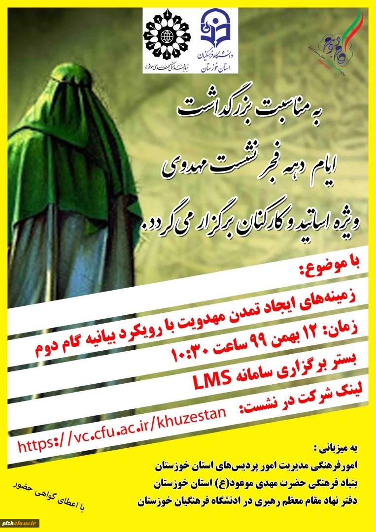 امتیاز دهید : امور فرهنگی دانشگاه فرهنگیان خوزستان به مناسبت بزرگداشت دهه فجر برگزار می کند چهارشنبه 8 بهمن 1399 ساعت 1:42