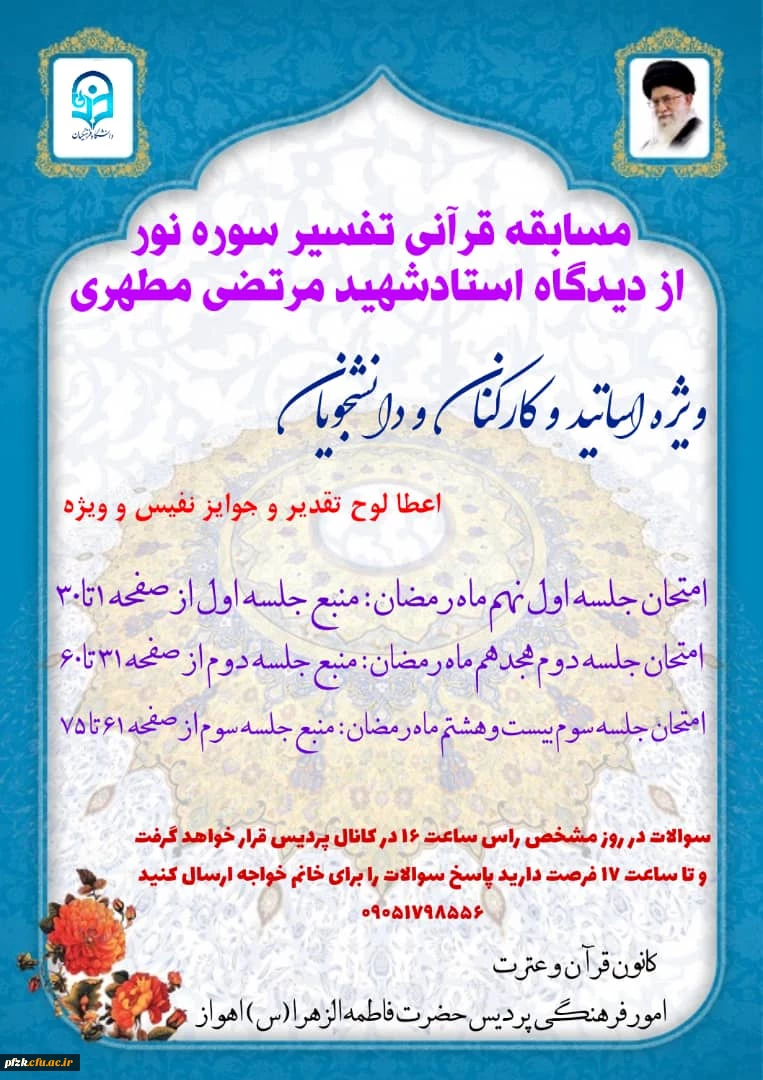 مسابقه قرآنی تفسیر سوره نور از دیدگاه استاد شهید مرتضی مطهری ویژه اساتید، کارکنان و دانشجویان