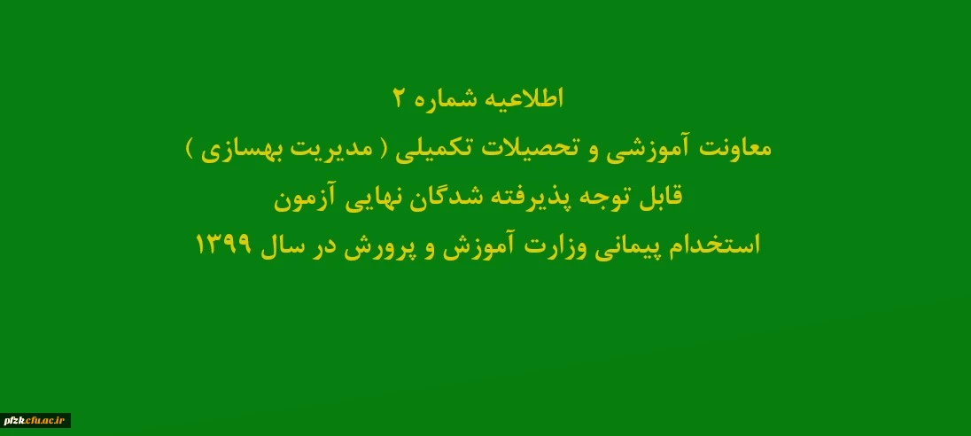 اطلاعیه شماره2 معاونت آموزشی و تحصیلات تکمیلی ( مدیریت بهسازی ) قابل توجه پذیرفته شدگان نهایی آزمون استخدام پیمانی وزارت آموزش و پرورش در سال 1399