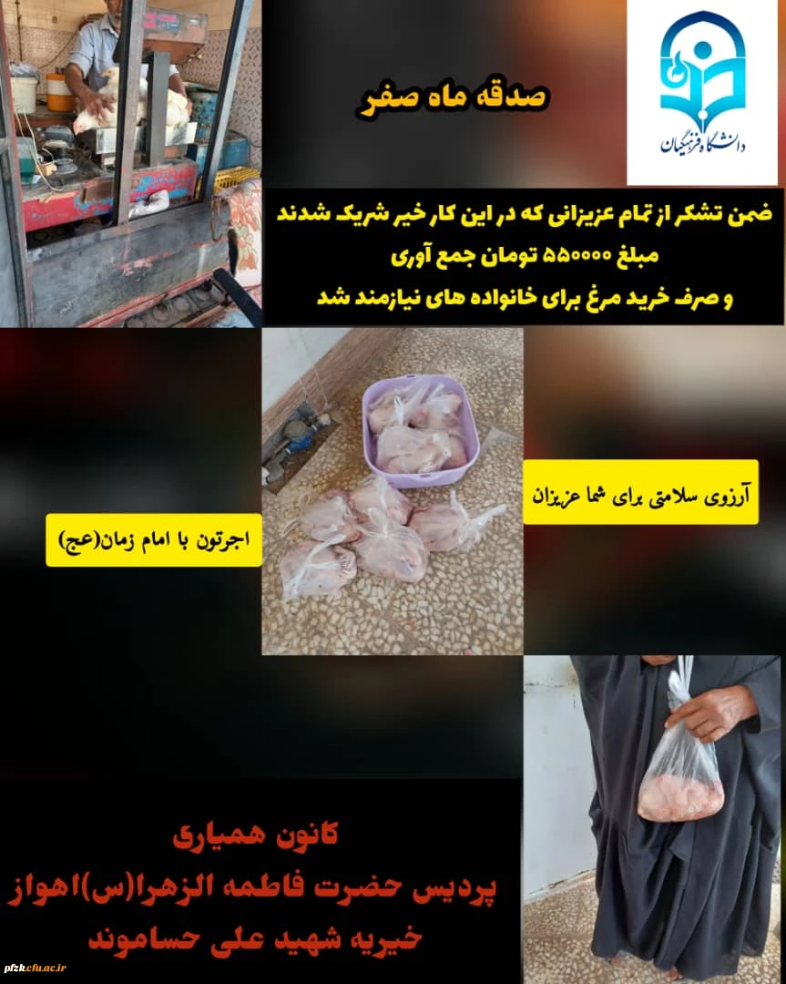 خرید مرغ برای خانواده های نیازمند به همت کانون همیاری پردیس حضرت فاطمه الزهرا(س) اهواز خیریه شهید علی حساموند