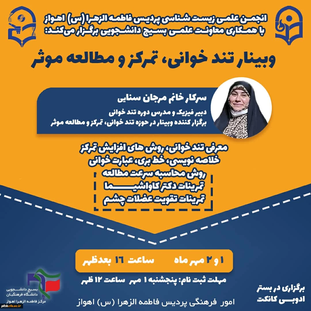 برگزاری کارگاه تندخوانی، تمرکز و مطالعه موثر به همت انجمن علمی زیست شناسی پردیس فاطمه الزهرا (س) اهواز