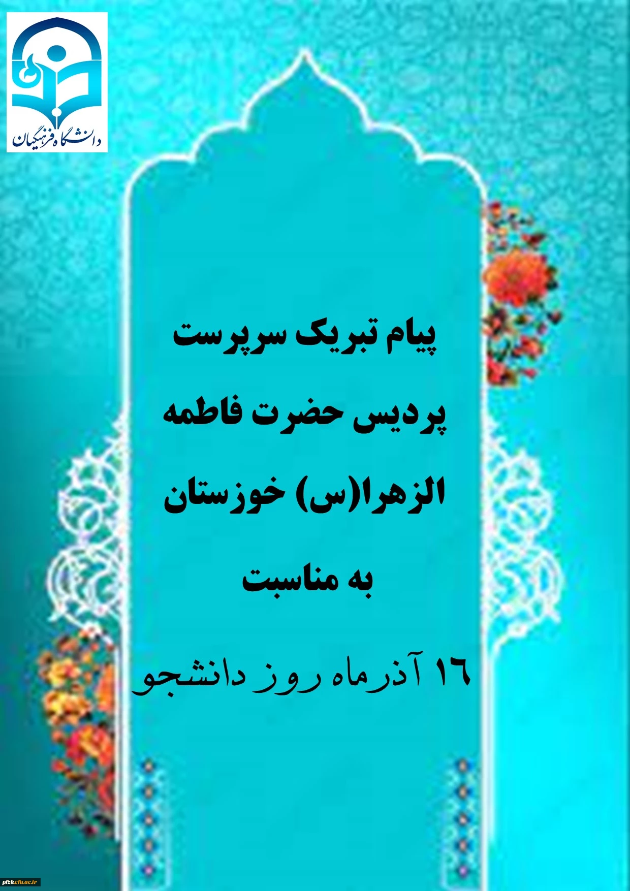 امتیاز دهید : پیام تبریک سرپرست پردیس حضرت فاطمه الزهرا(س) خوزستان به مناسبت روز دانشجو سهشنبه 16 آذر 1400 ساعت 8:39