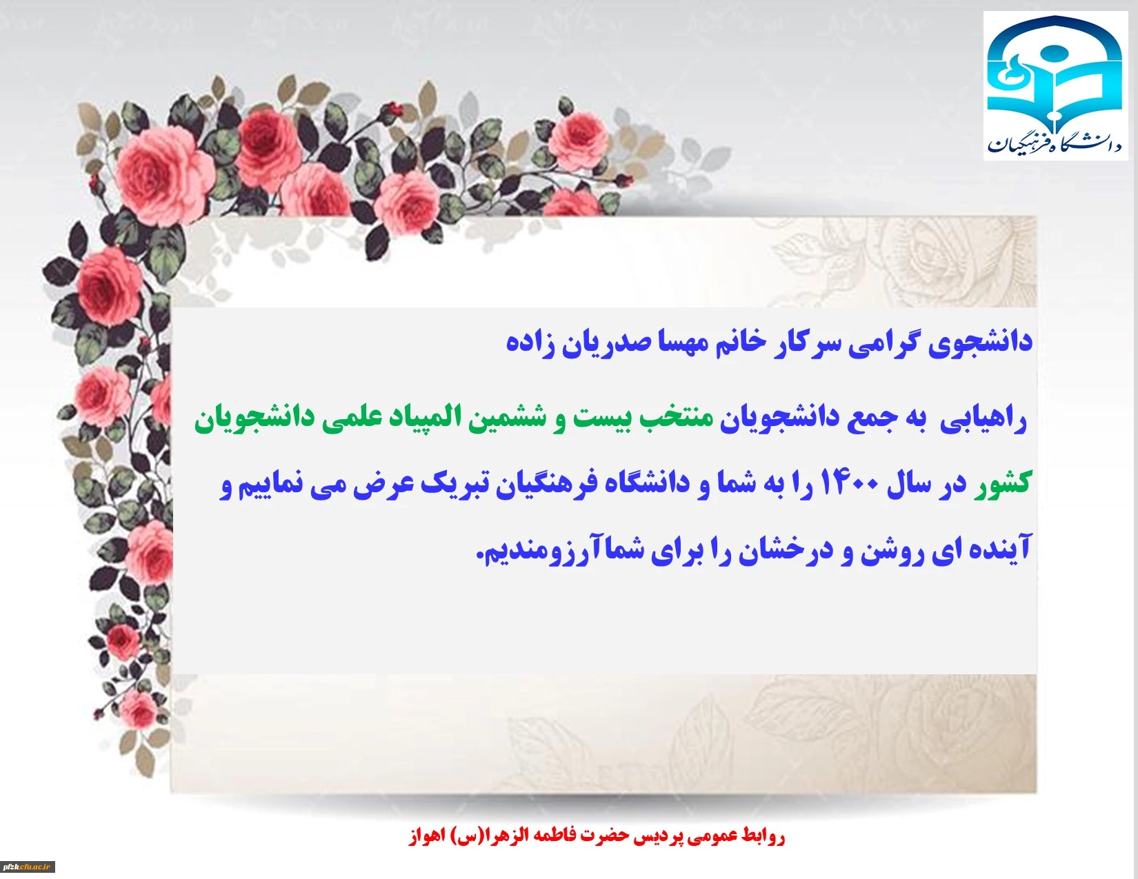 راهیابی دانشجوی پردیس حضرت فاطمه الزهرا(س) به جمع دانشجویان منتخب بیست و ششمین المپیاد علمی دانشجویان کشور