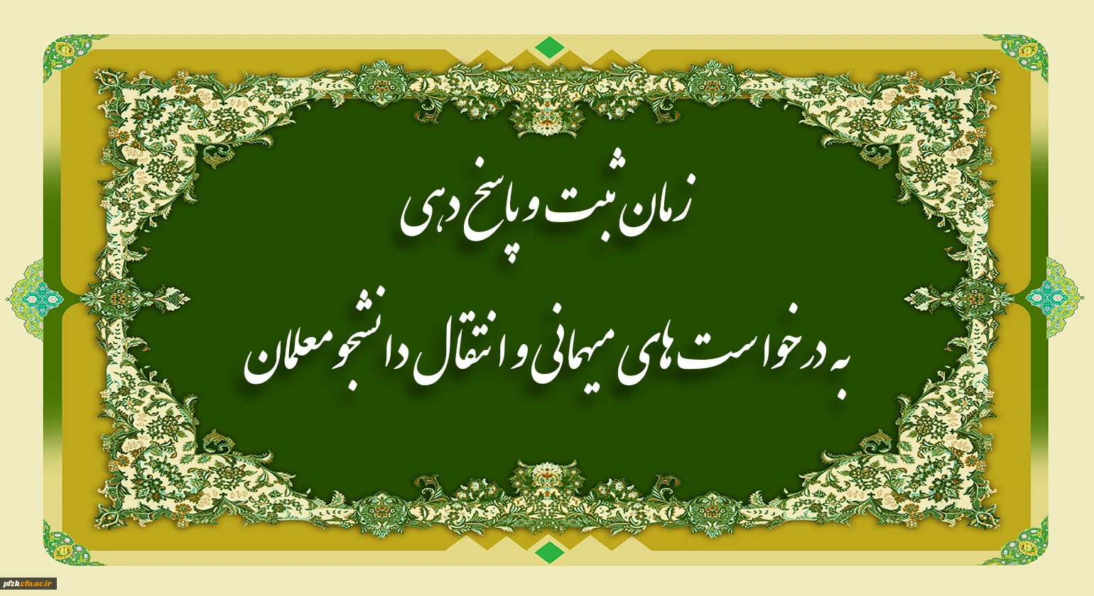 اطلاعیه زمانبندی ثبت درخواست و پاسخدهی میهمانی دانشجومعلمان (نیمسال اول تحصیلی 1402-1401)