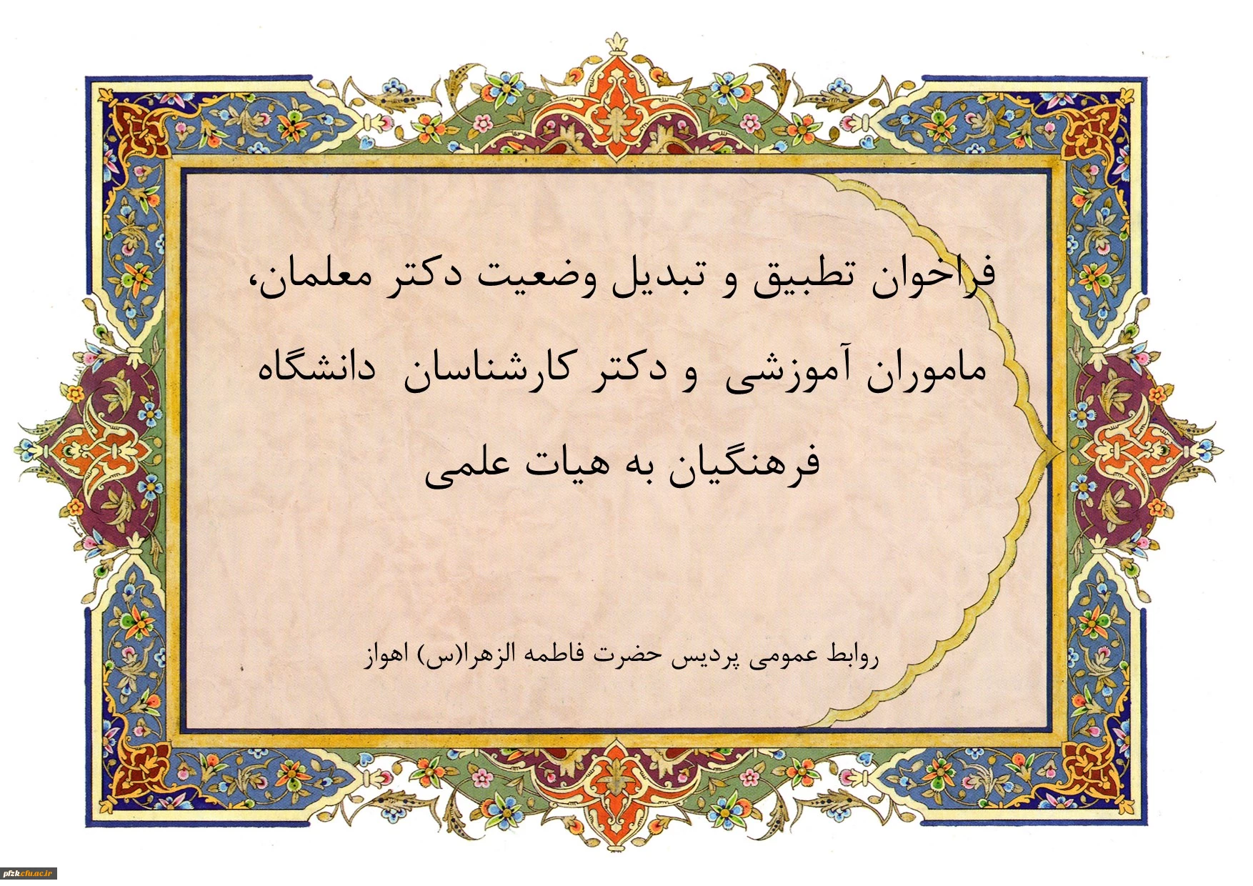 فراخوان دستورالعمل تطبیق و تبدیل وضعیت دکترمعلمان، ماموران آموزشی و دکترکارشناسان دانشگاه فرهنگیان به هیات علمی