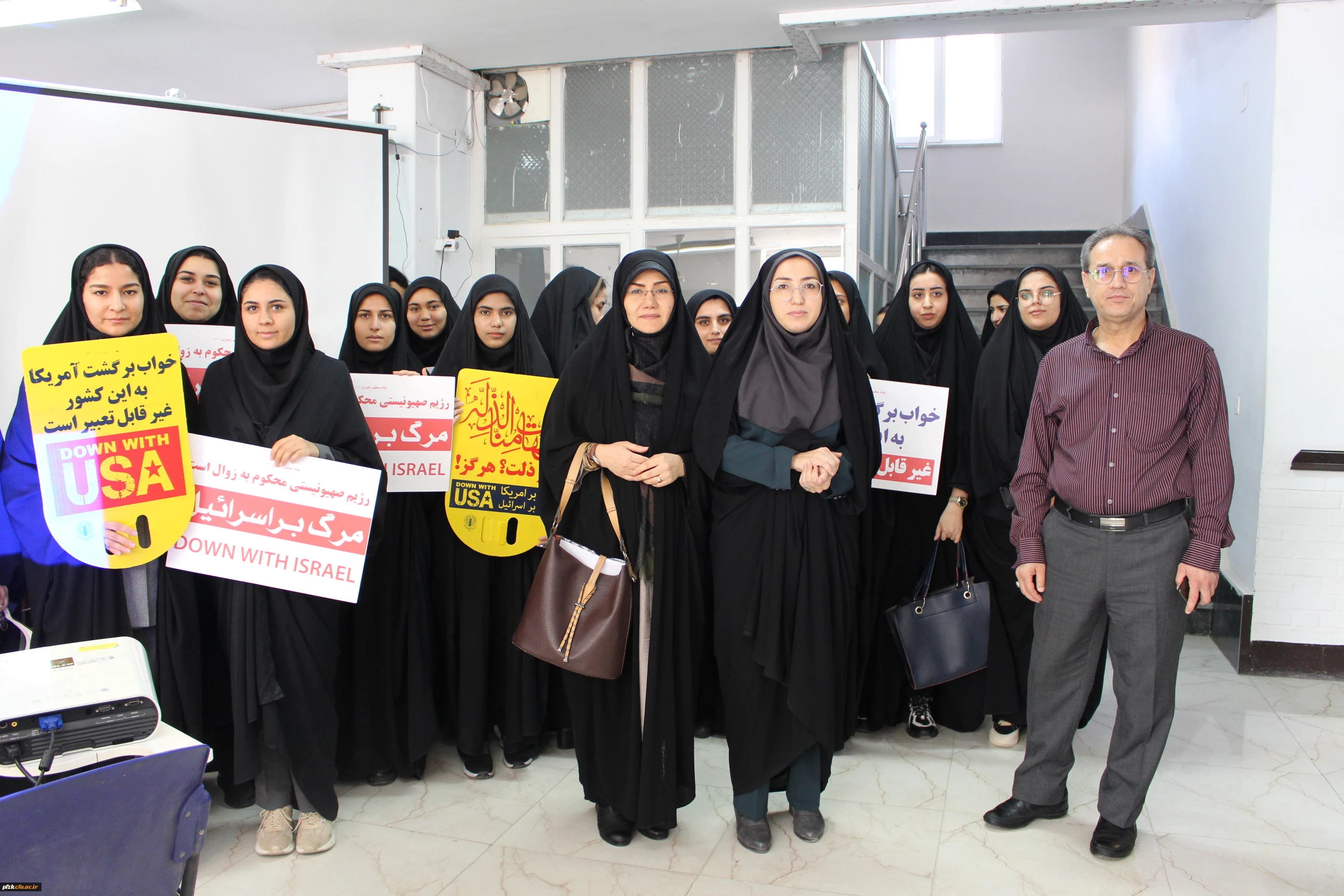 تجمع اعتراض آمیز فرهیختگان دانشگاه فرهنگیان پردیس حضرت فاطمه الزهرا(س) اهواز در دفاع از مردم مظلوم غزه