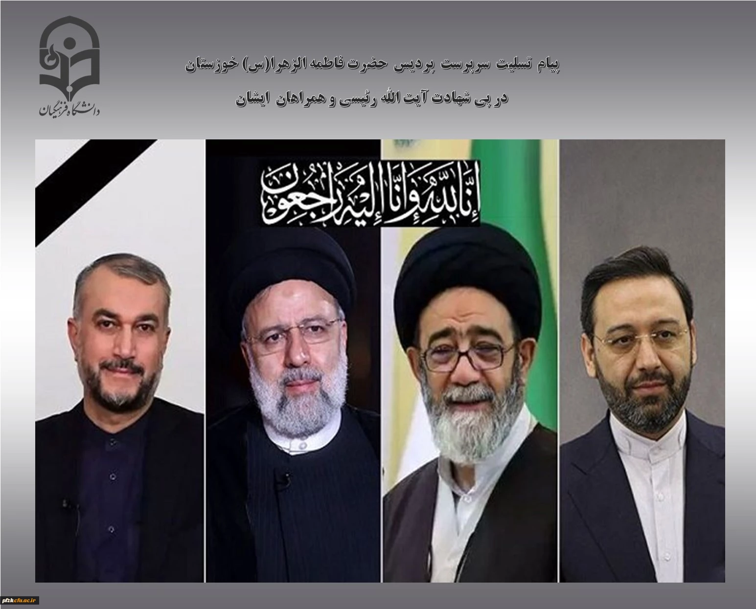 پیام تسلیت سرپرست پردیس حضرت فاطمه الزهرا(س) خوزستان در پی شهادت آیت الله سید ابراهیم رئیسی و همراهان وی