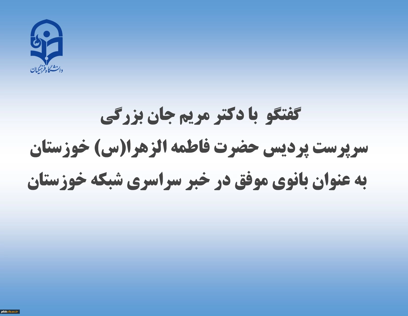 گفتگو با دکتر مریم جان بزرگی سرپرست پردیس حضرت فاطمه الزهرا(س) خوزستان به عنوان بانوی موفق در خبر سراسری شبکه خوزستان