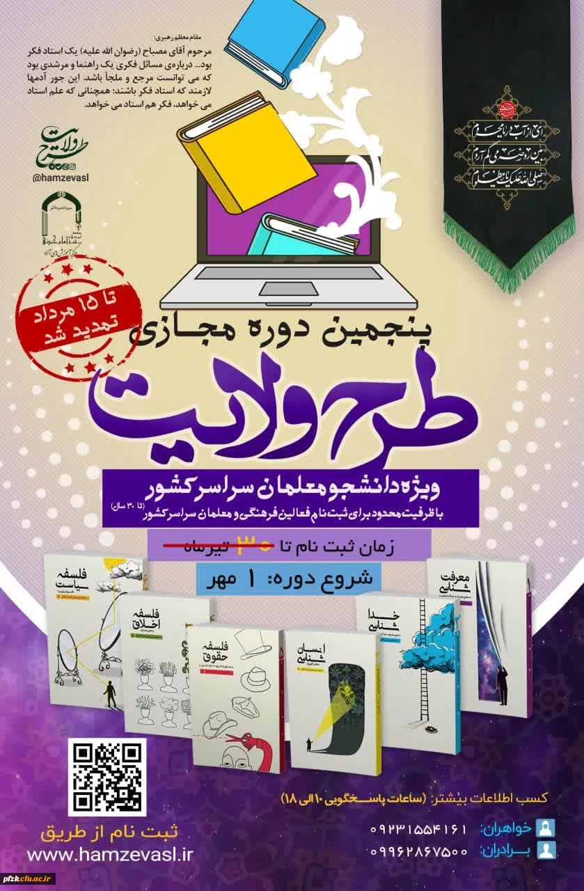 امتیاز دهید : ثبت نام پنجمین دوره مجازی طرح ولایت کشوری ١۴٠۳ تمدید شد. چهارشنبه 3 مرداد 1403 ساعت 7:17