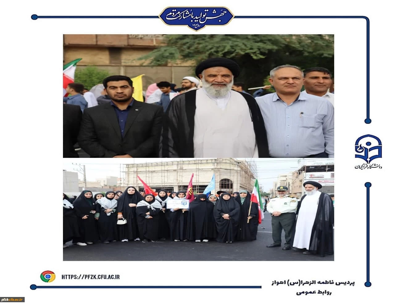 حضور کارکنان و دانشجو معلمان پردیس حضرت فاطمه الزهرا(س) اهواز در راهپیمایی ۱۳ آبان