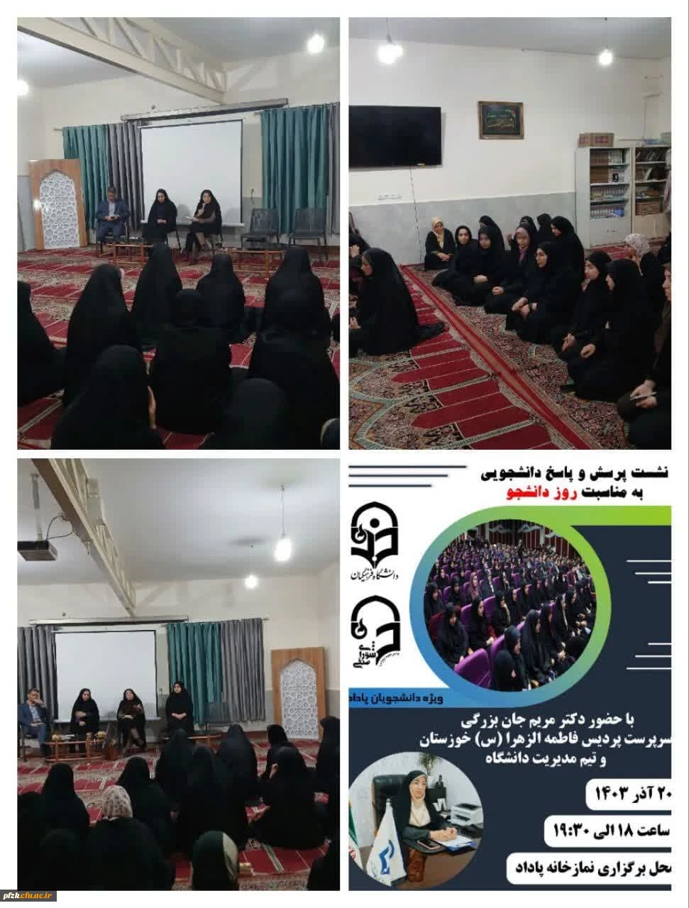 نشست پرسش و پاسخ دانشجویی با حضور مریم جان بزرگی سرپرست پردیس حضرت فاطمه الزهرا(س) اهواز