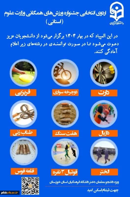 امتیاز دهید : اردوی انتخابی جشنواره ورزش های همگانی وزارت علوم (استانی) یکشنبه 31 فروردین 1404 ساعت 12:35