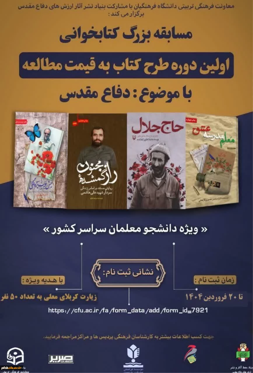 امتیاز دهید : اولین مرحله آزمون کتابخوانی با عنوان طرح «کتاب به قیمت مطالعه» سهشنبه 9 اردیبهشت 1404 ساعت 8:48