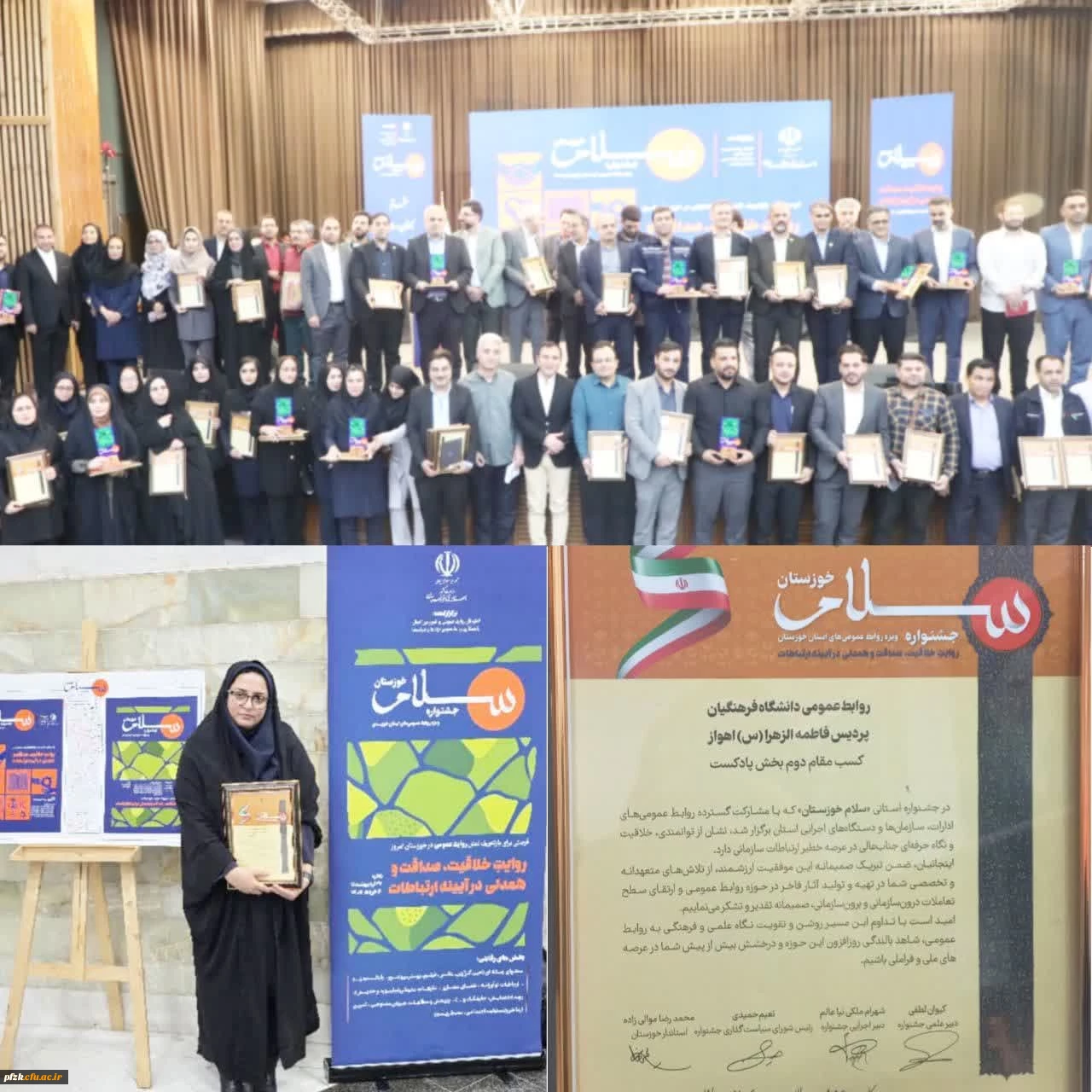کسب مقام دوم در بخش پادکست توسط روابط عمومی دانشگاه فرهنگیان ـ پردیس حضرت فاطمه الزهرا(س) اهواز در جشنواره سلام خوزستان