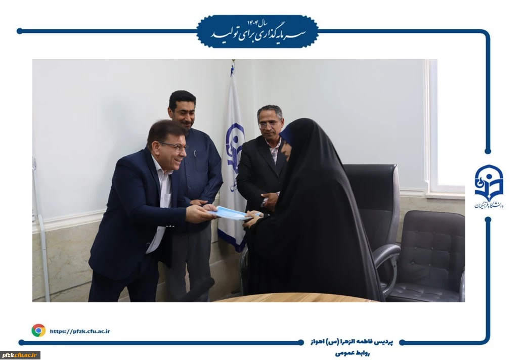 در ادامه، عادل سعیداوی معاون توسعه و منابع انسانی دانشگاه فرهنگیان خوزستان؛ بر نقش همدلی نیروها تأکید داشت. ایشان هماهنگی سازمانی را عامل تسریع و بهبود روند امور دانستند. سپس مراسم تکریم اکرم شوشتری معاونت آموزشی پردیس در دستور کار جلسه قرار گرفت.